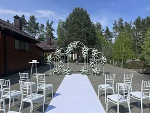 Территория базы отдыха располагает красивыми локациями для проведения свадебных выездных регистраций, проведения фотоссесий, тимбилдингов, банкетов и корпоративов, семинаров, фуршетов, различных спортивных мероприятий и прочих праздников, предполагающих большое количество гостей.