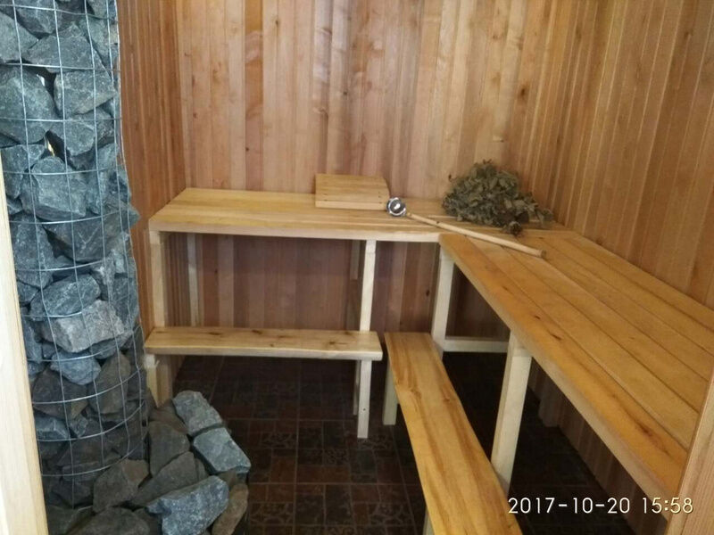 В усадьбе есть замечательная баня на дровах, в которой можно расслабиться, от души попарившись с веником.