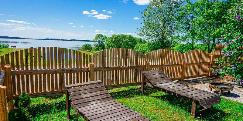 Вы можете снять деревянный домик на Браславских озерах, особенностью которого стала просторная терраса второго этажа. Кроме стандартного пакета удобств — необъятных кроватей, приветливой гостиной, аккуратных санузлов в этом домике вы получаете воздушность, чистый озёрный горизонт с деревянной террасы. Чем не порхание бабочки или не полет божьей коровки? Кроме того — дом разделён на две равноценные части так, что две компании гостей могут отдыхать, не мешая друг другу. Такой тип расселения даёт возможность проживания минимальному количеству гостей — 4 или 2, используя лишь часть дома без финансовых издержек.