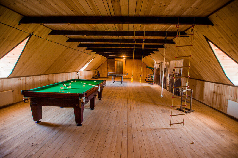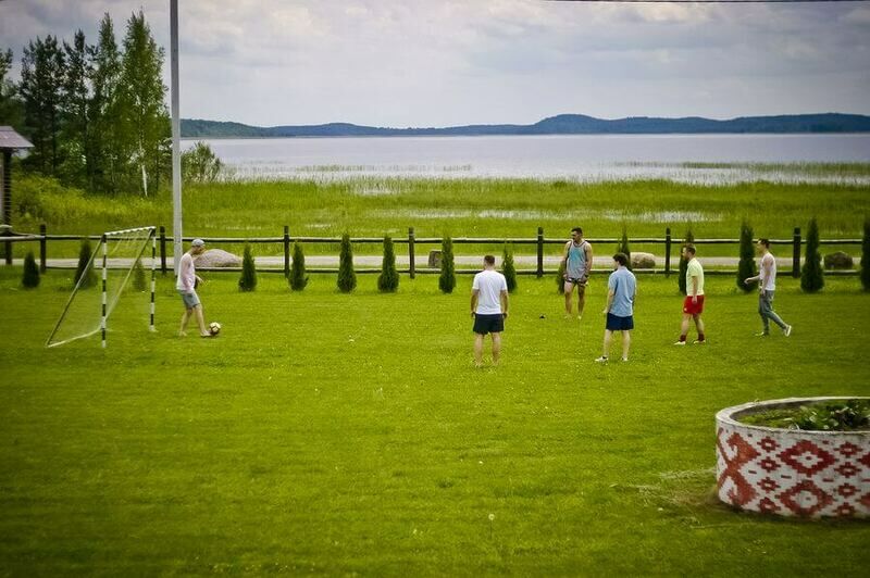 Для тех кто предпочитает активный отдых на свежем воздухе на территории располагаются волейбольная, футбольная, баскетбольная площадки, а так же площадка для игры в бадминтон. Для маленьких гостей предусмотрена площадка для катания на самокатах и роликовых коньках.
