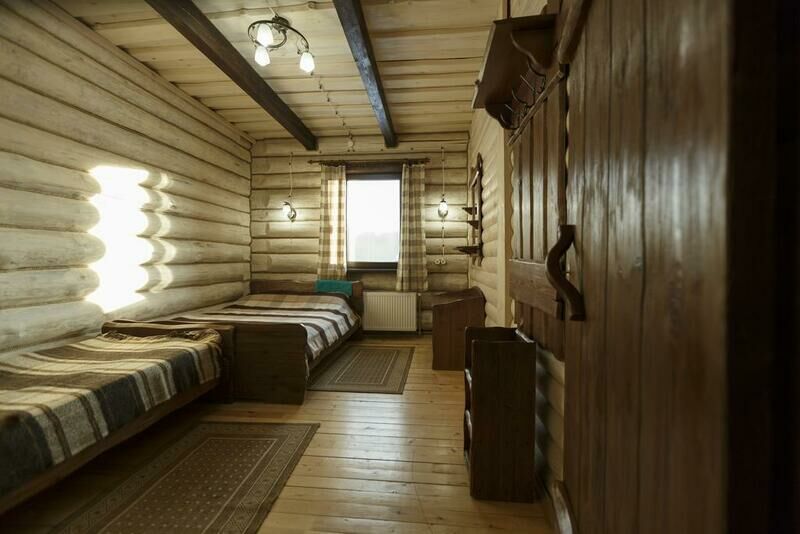 Четырехместный номер с ддвумя односпальными кроватями и большой двуспальной кроватью. Размер номера 20 м².