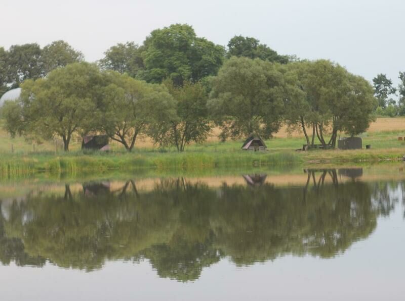 Участок усадьбы вплотную примыкает к озеру с родниковой водой, где есть удобные песчаные спуски к воде. За отдельную плату заядлые рыбаки тоже найдут себе соответствующее развлечение.