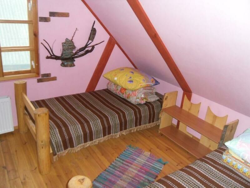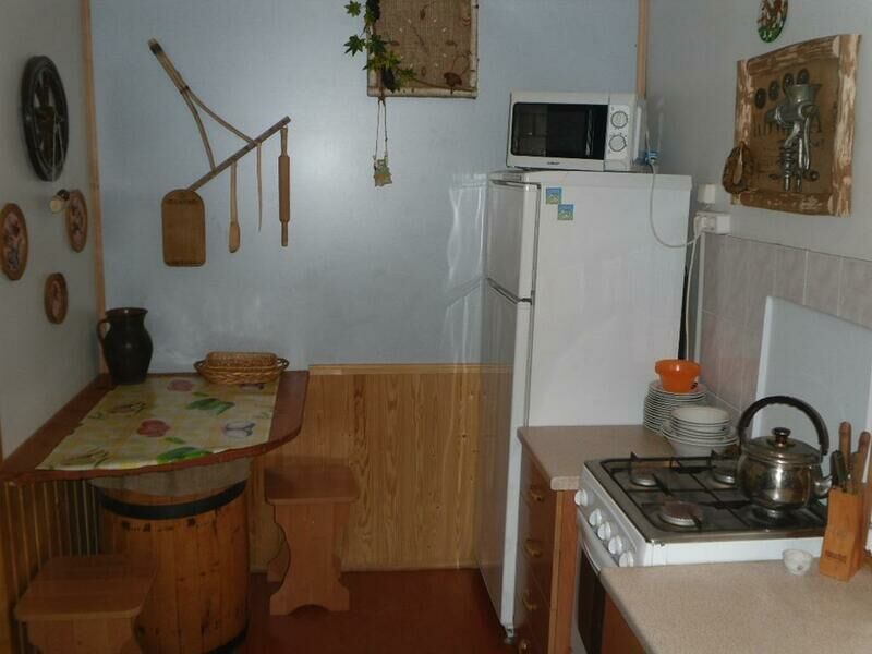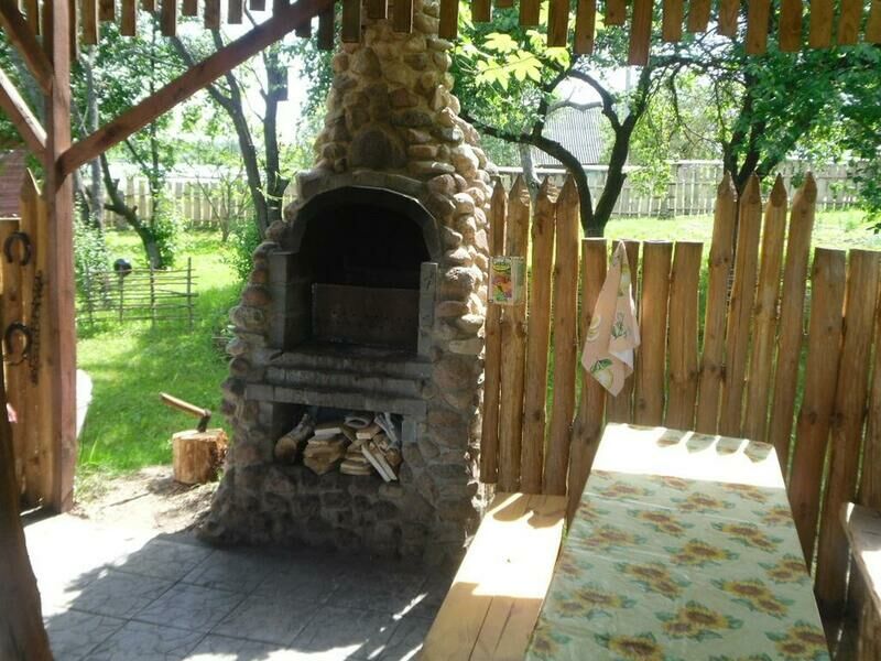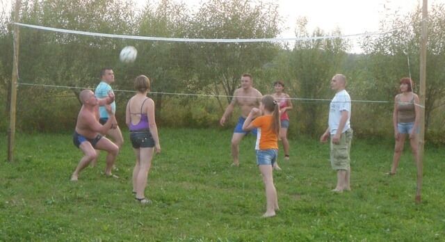 Коттедж, выполненный в деревенском стиле, полностью благоустроен современными удобствами. На территории коттеджа разместилась беседка в соответствующем дому стиле с мангалом, где можно отдохнуть и пожарить шашлыки. Для активного отдыха есть волейбольная площадка, а для детей – качели и детская площадка.