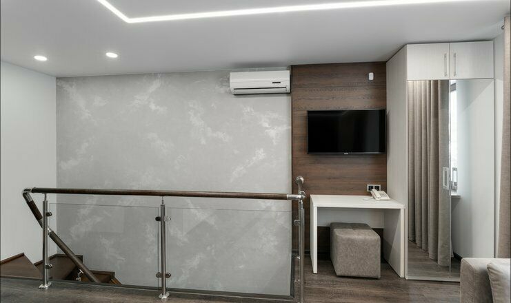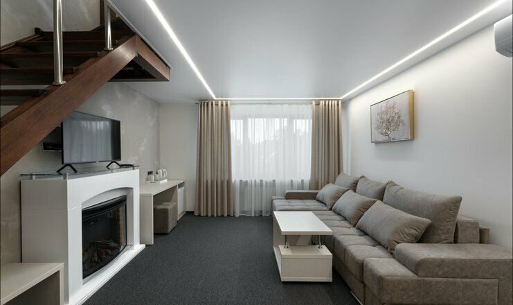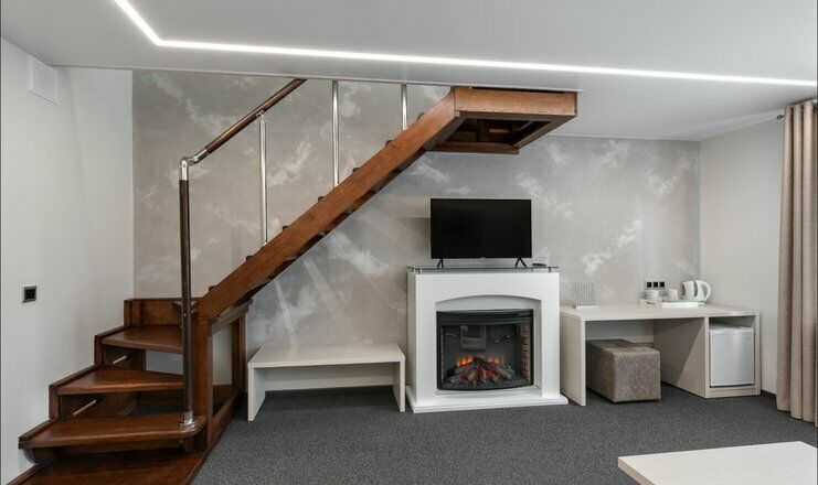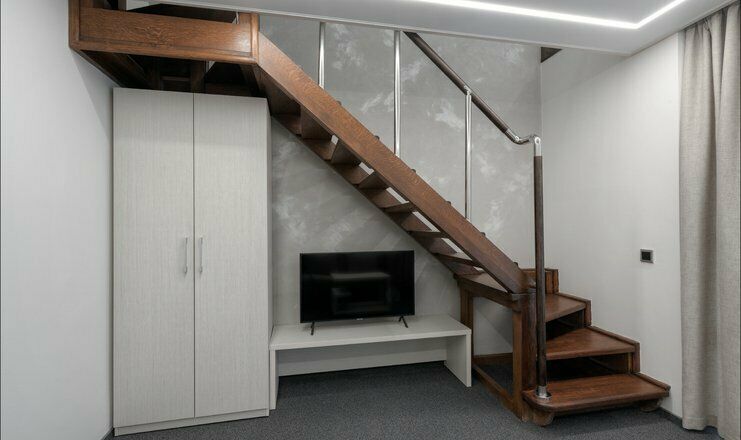 двухуровнеый номер, двуспальныя кровать+двуспальный диван, су,душ, тв, терраса