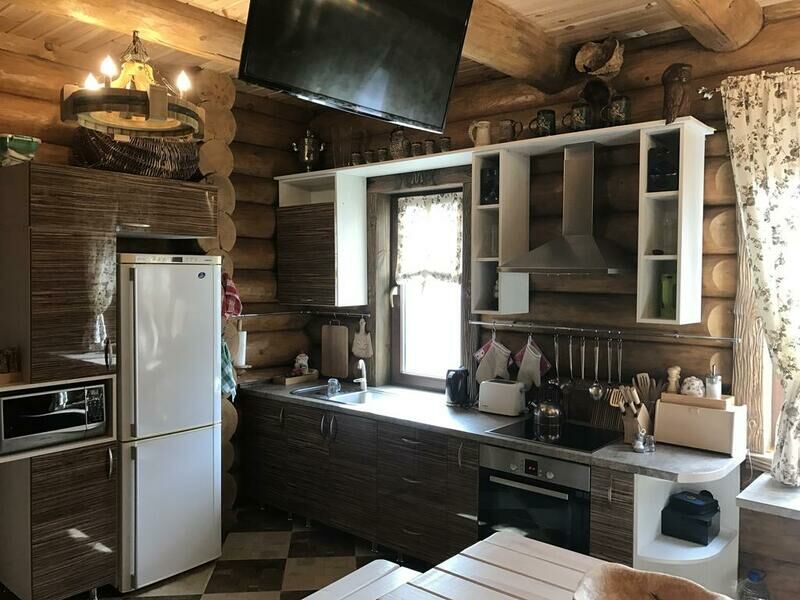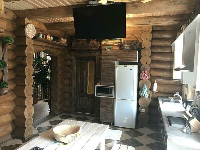 В гостиной имеется красивый камин, у которого зимой так хорошо посидеть за чашечкой вкусного глинтвейна, а так же телевизор со спутниковыми каналами, большой диван, который трансформируется в спальные места, 2 удобных кресла и WI-FI.