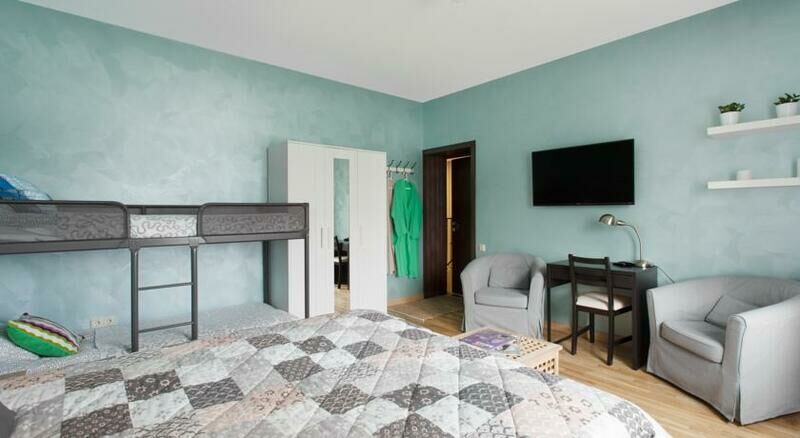 В распоряжении гостей этого четырехместного номера плита, стиральная машина и телевизор со спутниковыми каналами. Размер номера 24 м².
