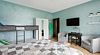 Двухместный номер с двуспальной кроватью, гостиной зоной, стиральной машиной и плитой. Размер номера 19 м².