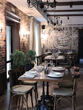 Зал ресторана выполнен в современном, стильном интерьере, и может с комфортом разместить до 60 человек.