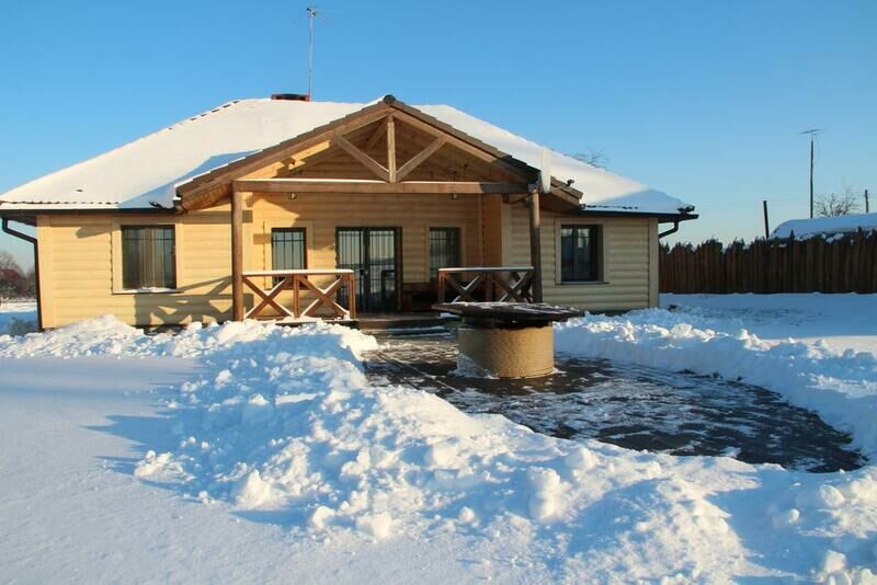 Дом состоит из трех отдельных и двух проходных комнат. В доме имеется русская баня на дровах, два санузла с горячей водой, кухня со всем необходимым. Дом оборудован дровяным камином, электрическим бойлером, подогревом полов. На полу уложена плитка и дубовый паркет. Стены декорированы охотничьими трофеями и оригинальными картинами белорусских художников. Телевизор с плоским экраном, спутниковое телевидение, DVD проигрыватель, караоке.
