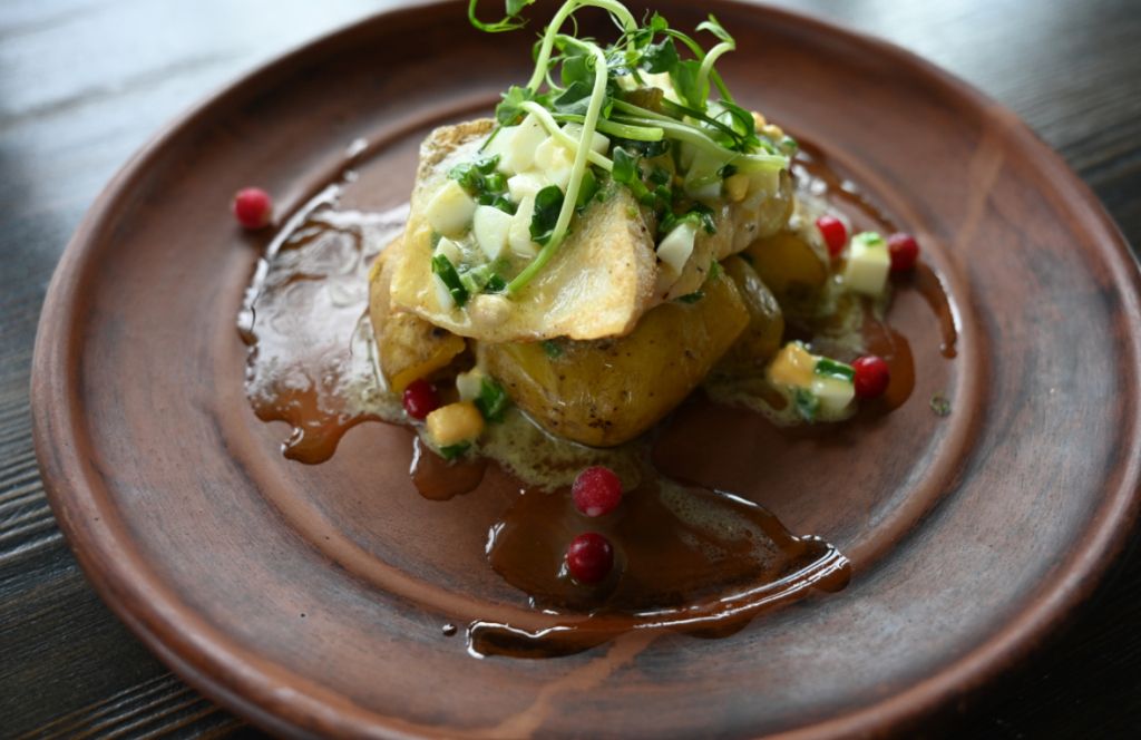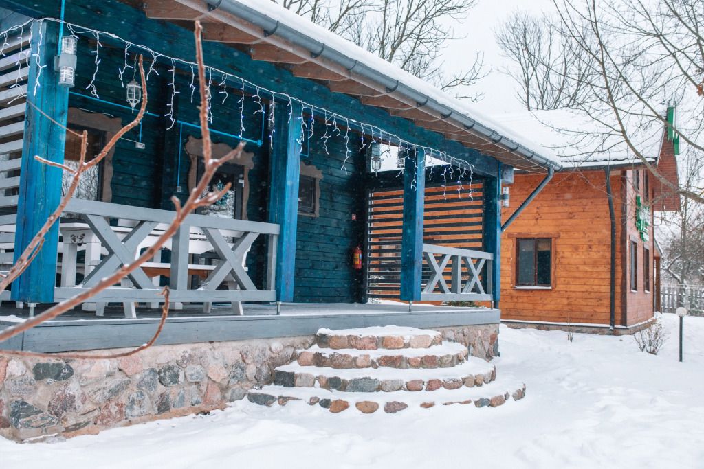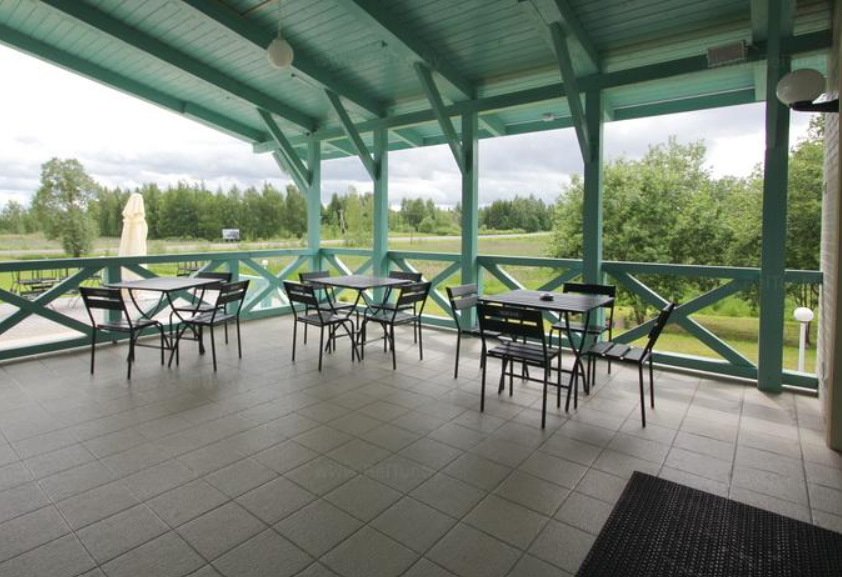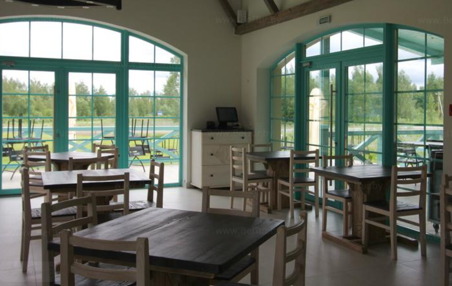 На территории комплекса располагается ресторан Возера с видом на озеро Мястро.