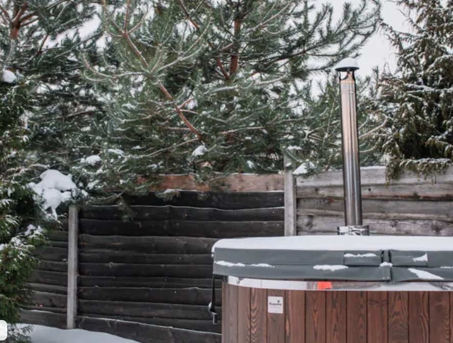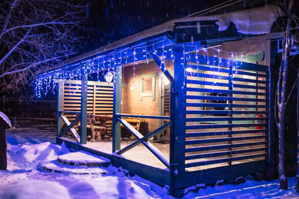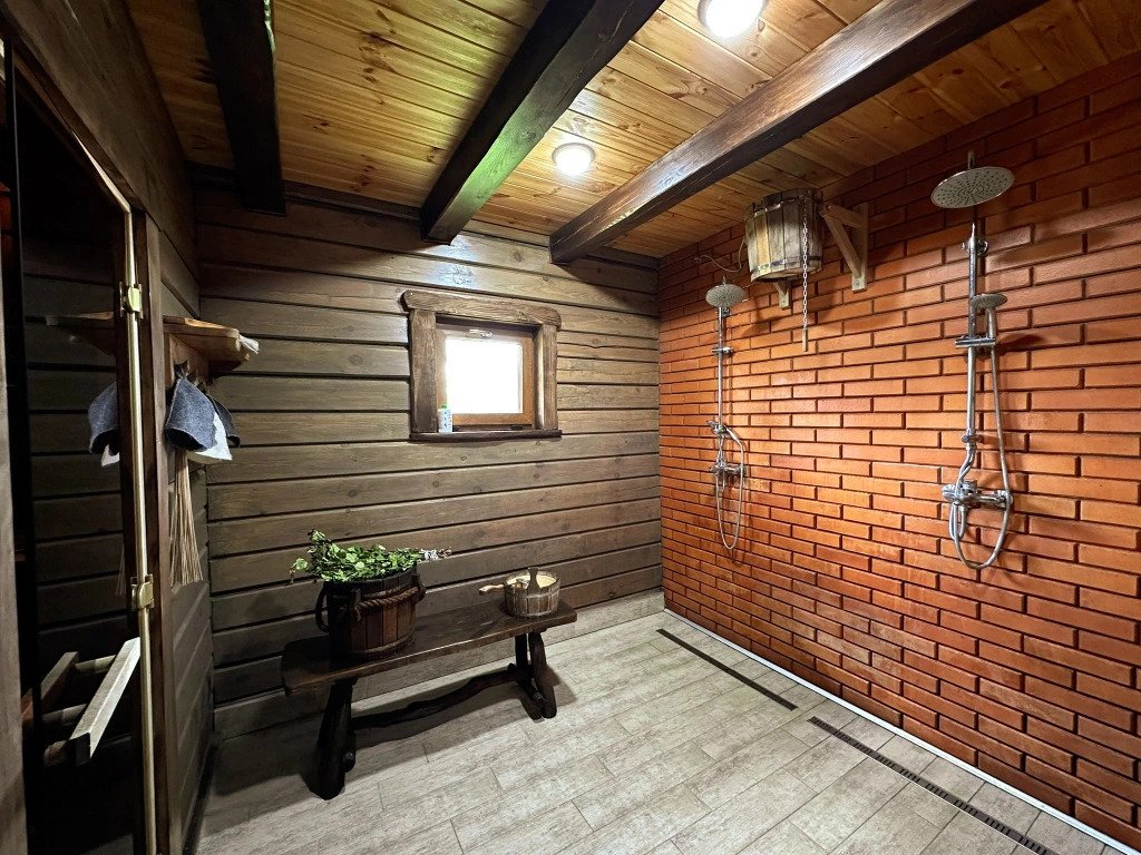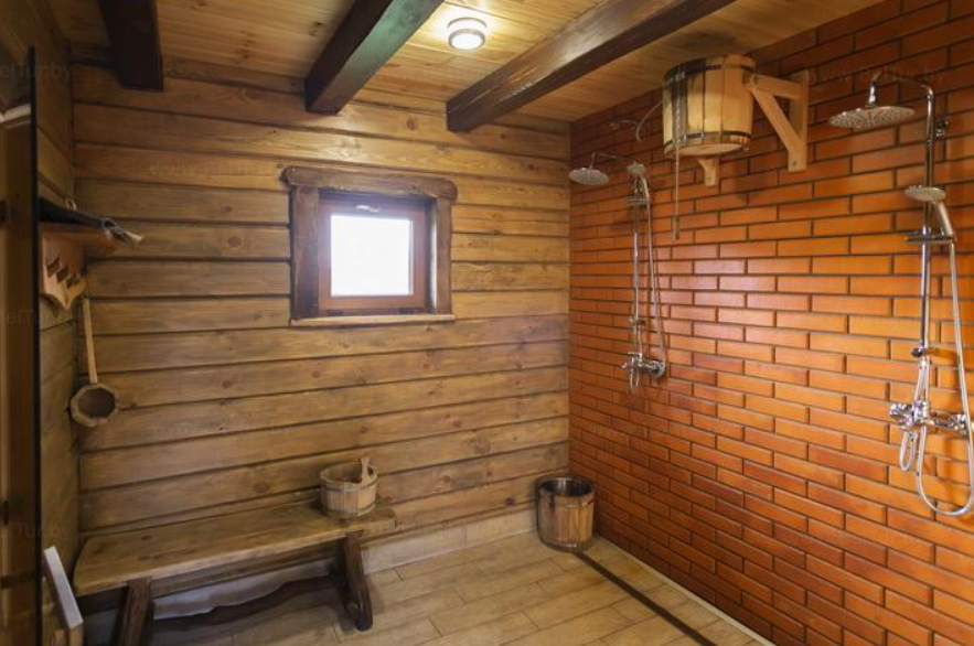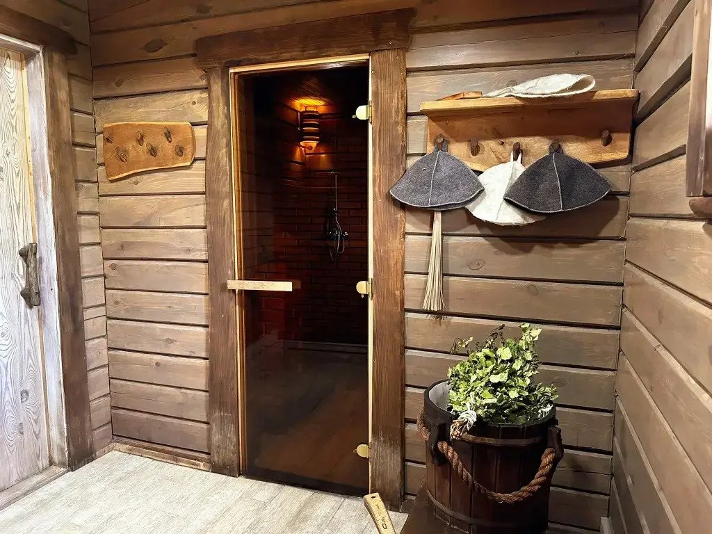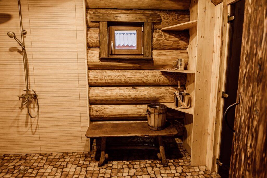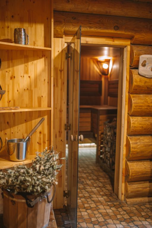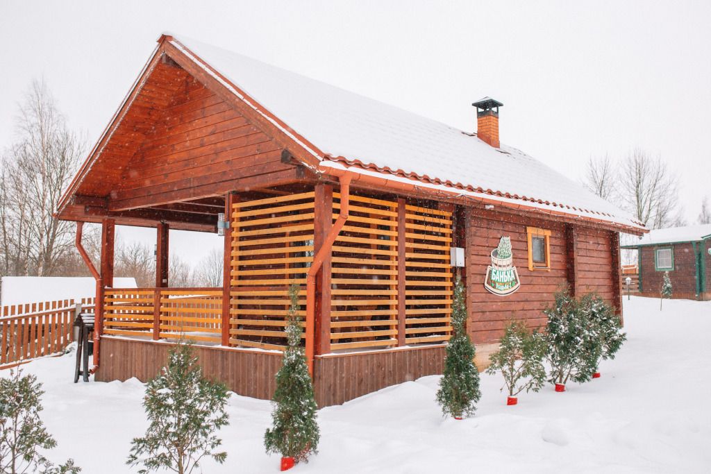 На территории комплекса расположена русская баня на дровах. Натуральные материалы, берёзовые веники, пар, зона отдыха с камином. В распоряжении гостей имеется терраса с мангалом, чайник, посуда, приборы. В комплектацию бани входят полотенца, веник и простыни. Услуги бани не входят в стоимость аренды дома и оплачиваются отдельно.