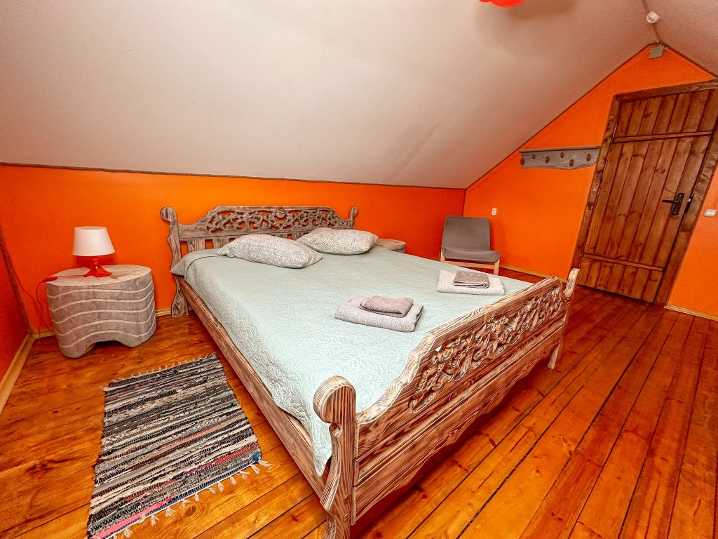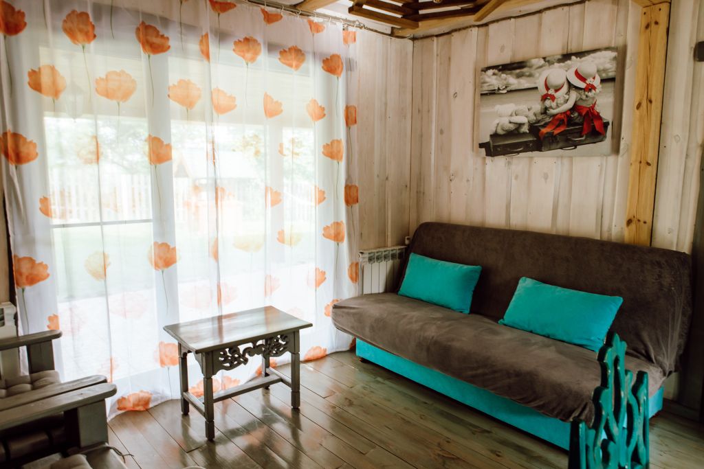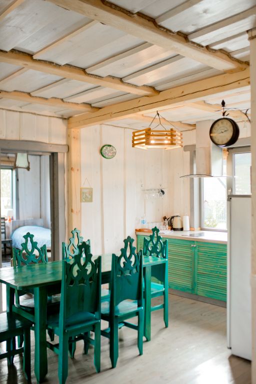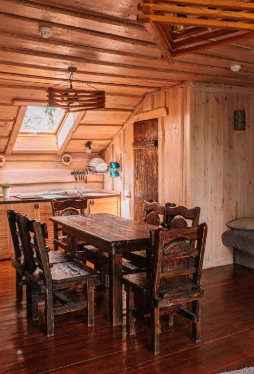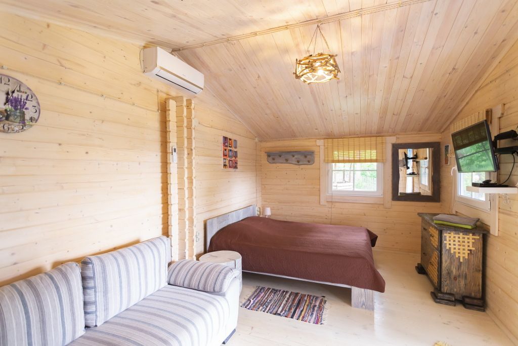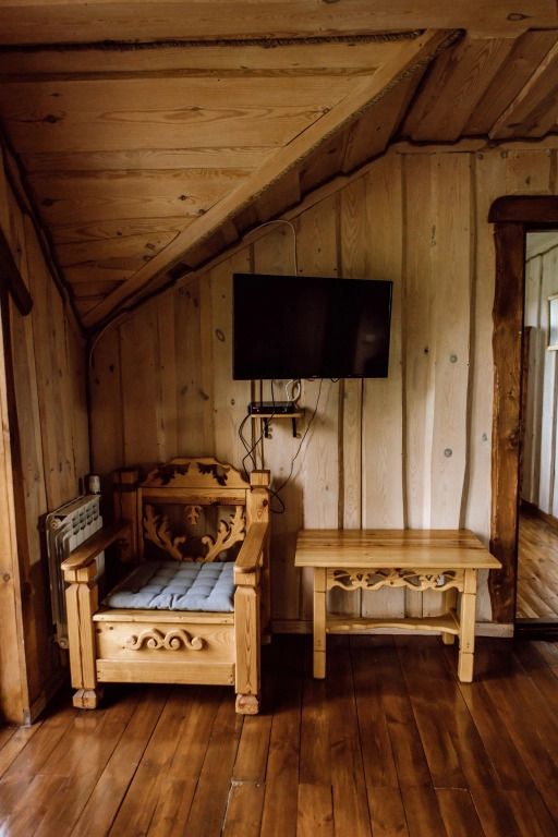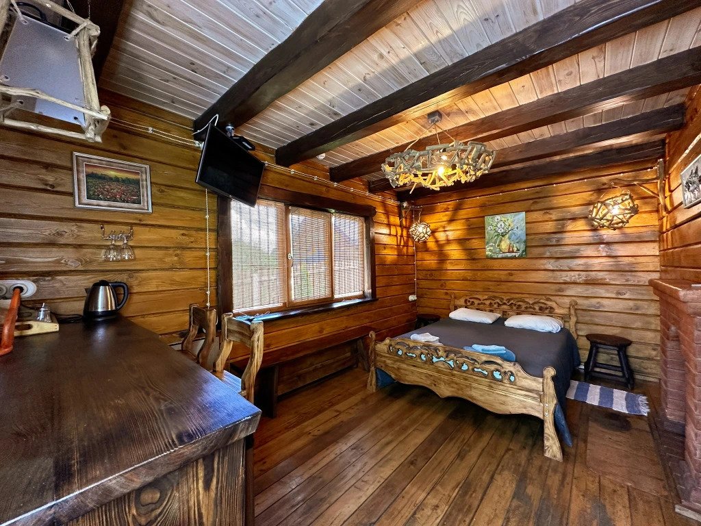 Для максимально комфортного отдыха есть все необходимое: кухонная зона (чайник, холодильник, микроволновая печь, набор посуды), двухместный диван в гостиной, мебель ручной работы, балкон с деревянными креслами, кондиционеры, беседка с мангалом для приготовления барбекю.