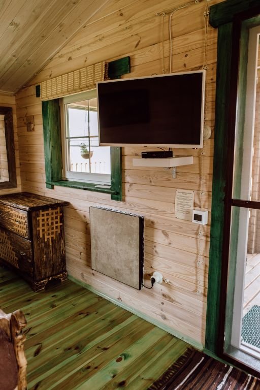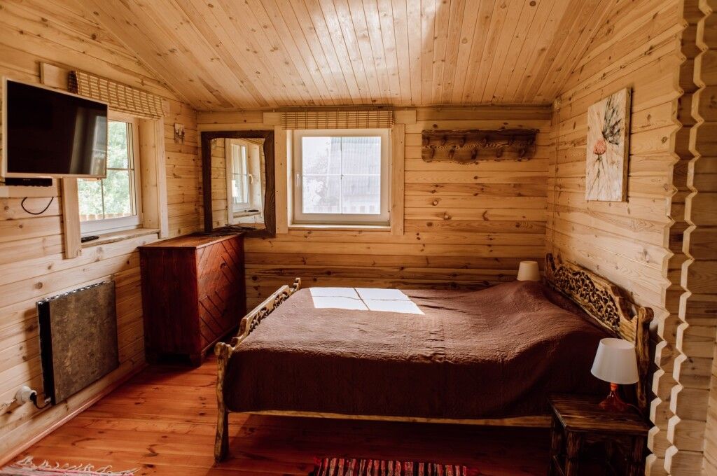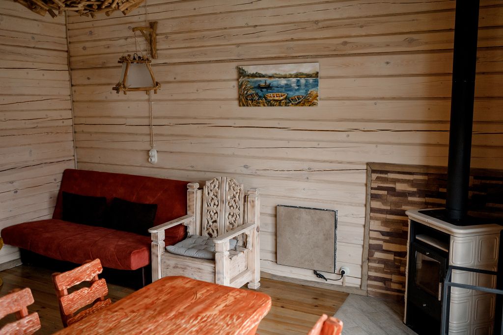 В доме 2 спальни с двуспальными кроватями, одна из которых расположилась на 2 этаже с видом на озеро Нарочь, гостиная с камином, совмещенная с кухонной и обеденной зоной. Дом отапливается газом, что делает его еще более комфортным и теплым, особенно в холодную пору года!