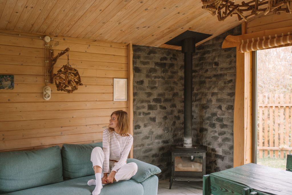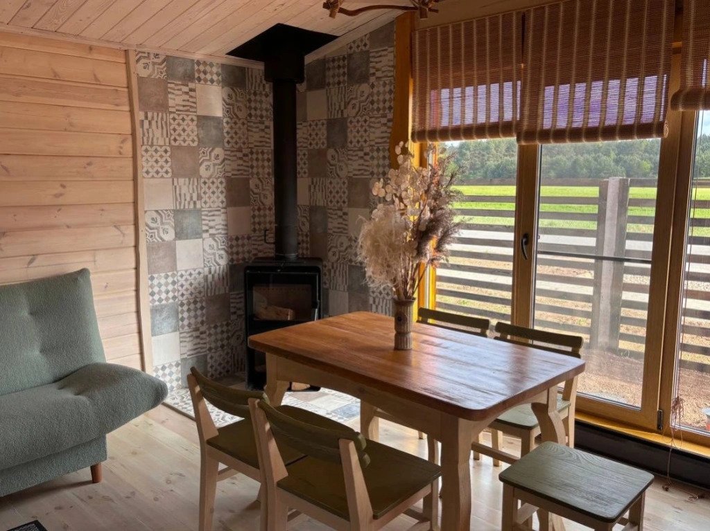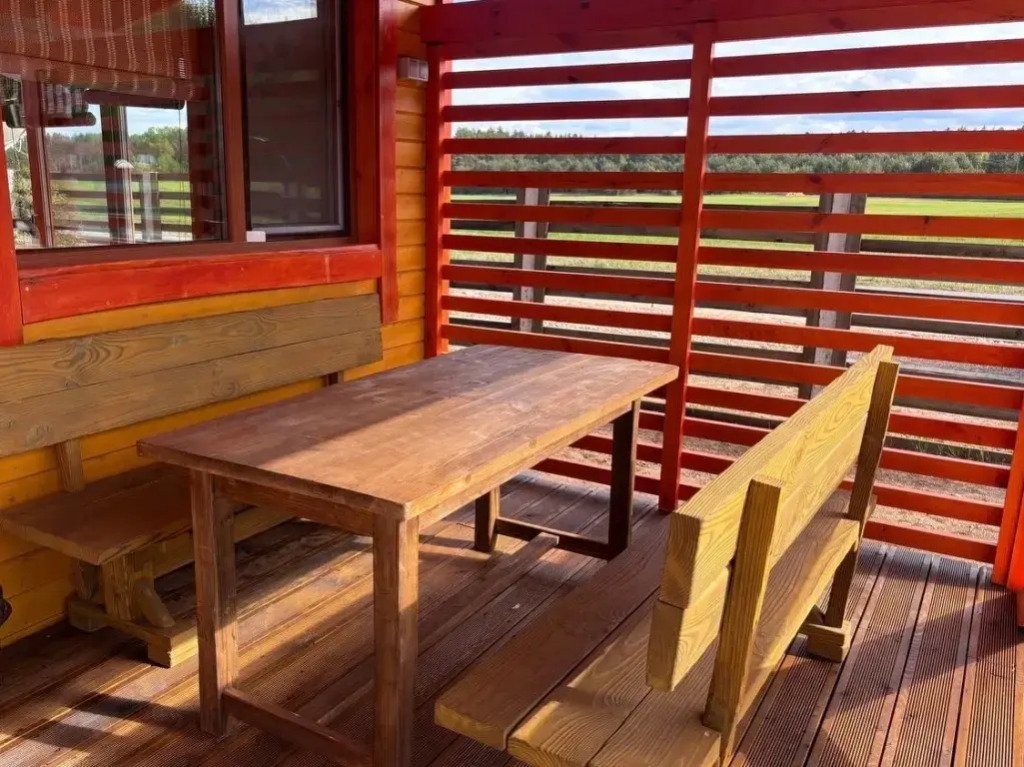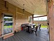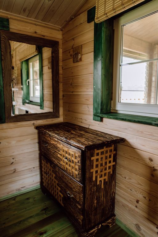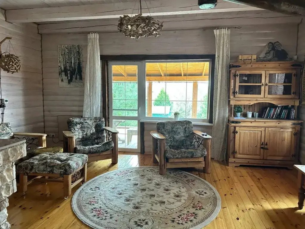 Для максимально комфортного отдыха есть все необходимое: кухонная зона (чайник, холодильник, микроволновая печь, набор посуды), двухместный диван в гостиной, мебель ручной работы, камин, панорамные окна, кондиционеры, 2 террасы, одна из которых с мангалом для приготовления барбекю, качели.