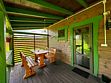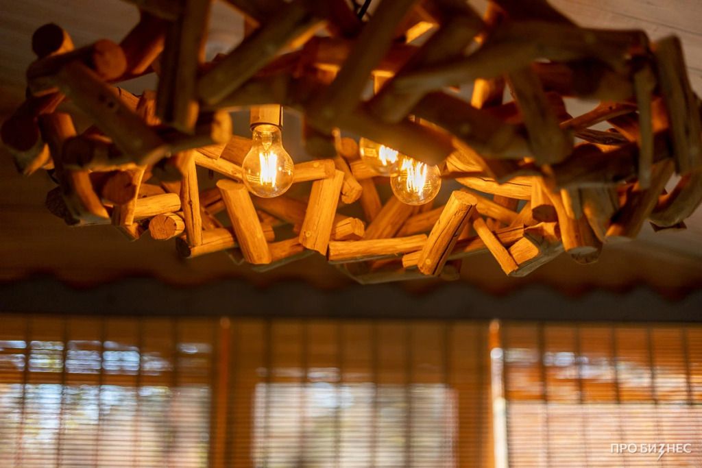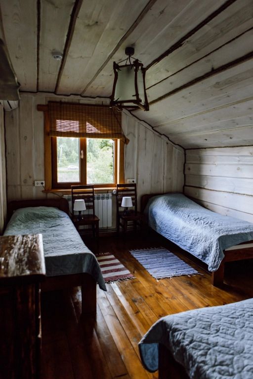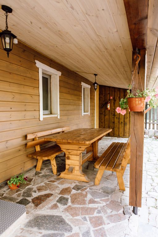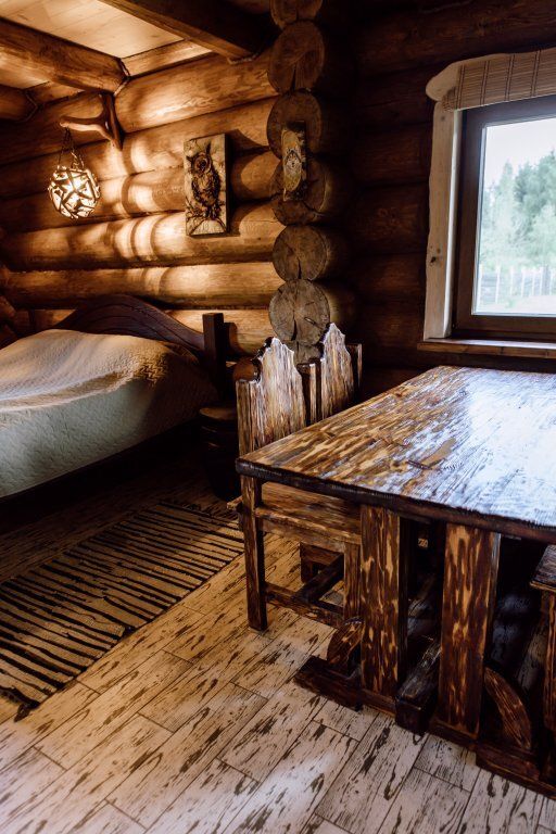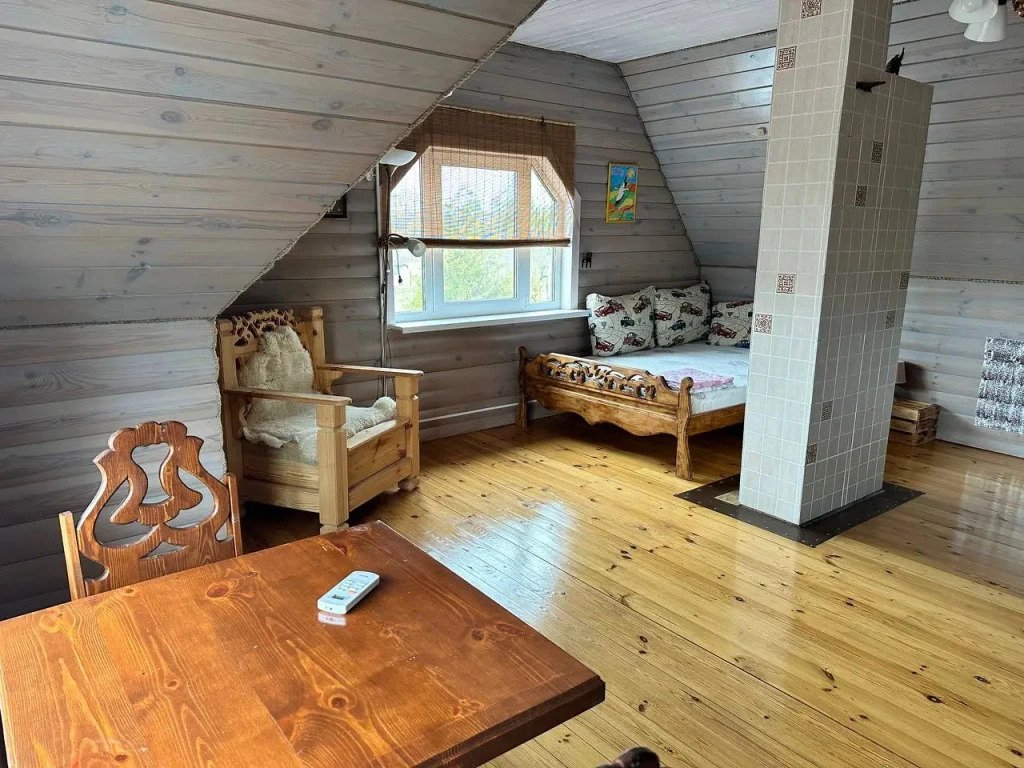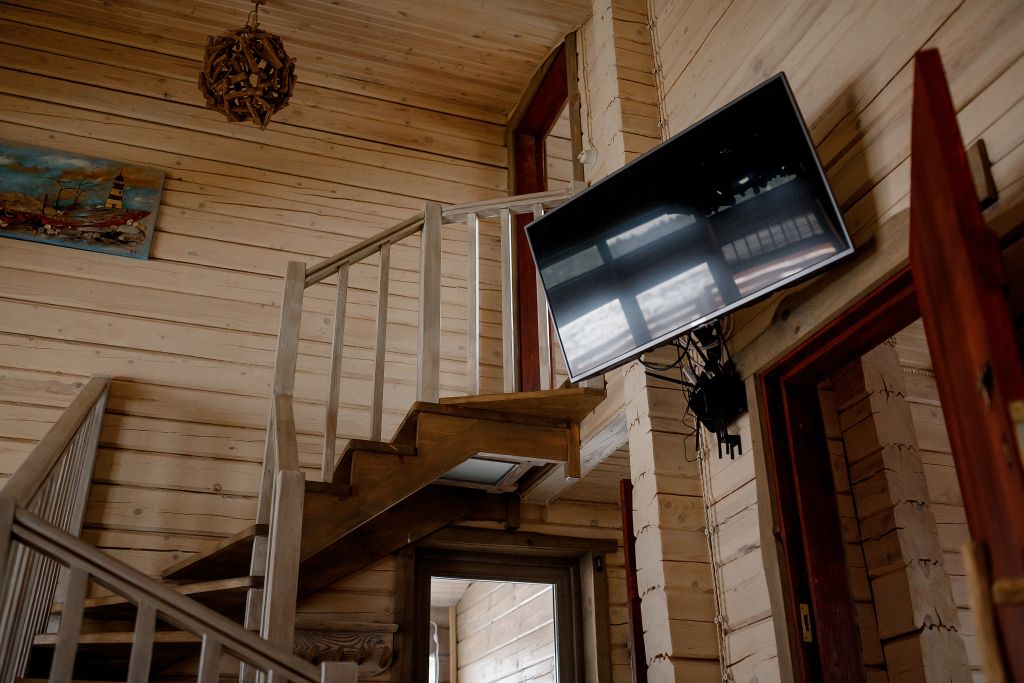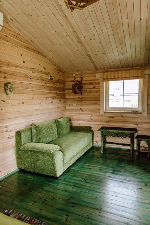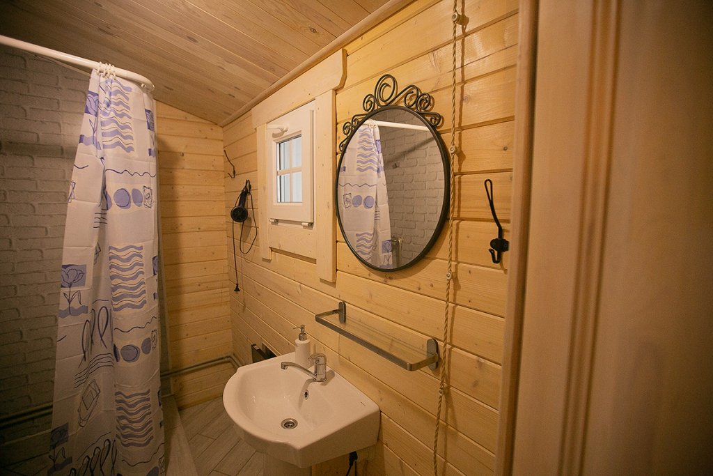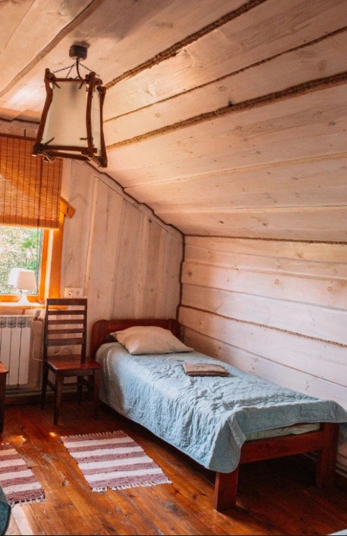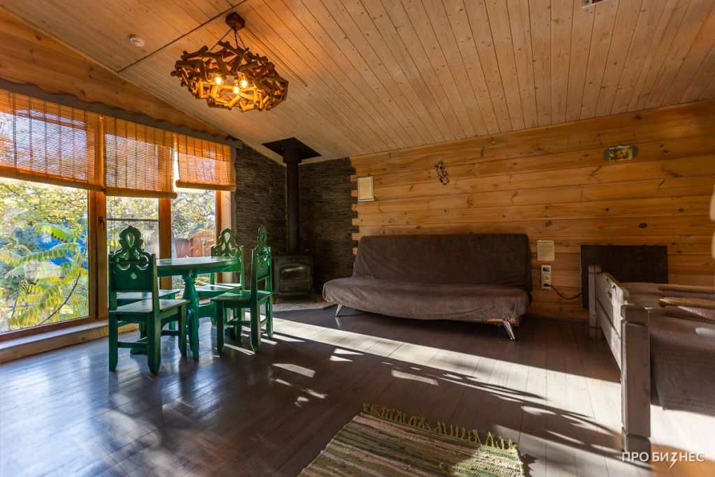 Эко расположен на втором этаже двухэтажного деревянного дома.