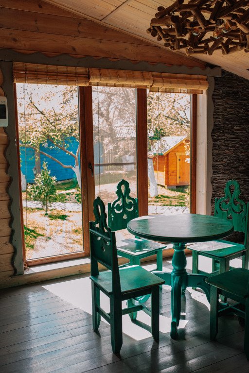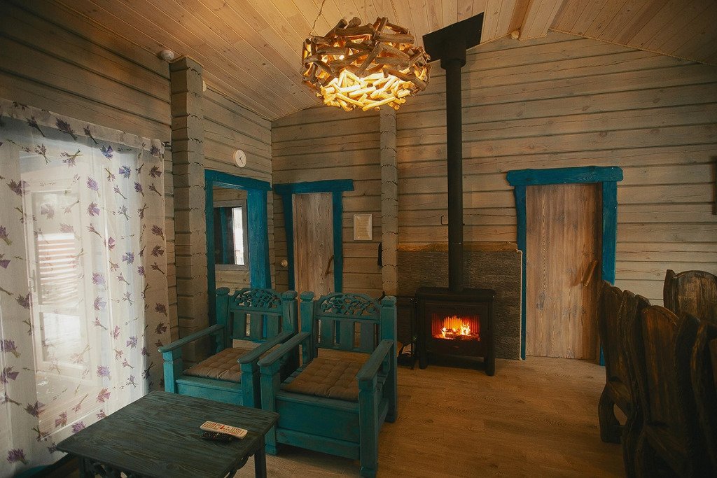 К услугам гостей 14 деревянных домов с мебелью ручной работы, оснащённые техникой, санузлами, кондиционерами и каминами, наличием спутникового телевидения. Общая вместимость — до 80 гостей. У каждого дома есть своя терраса или беседка, а также зона барбекю с мангалом.