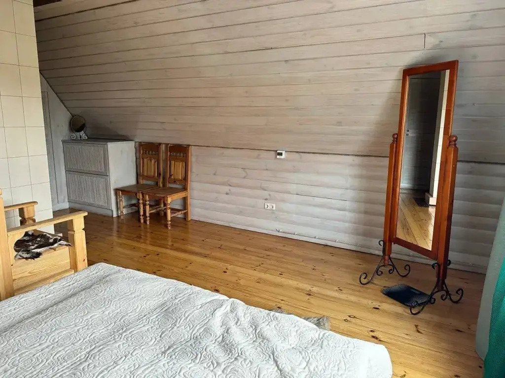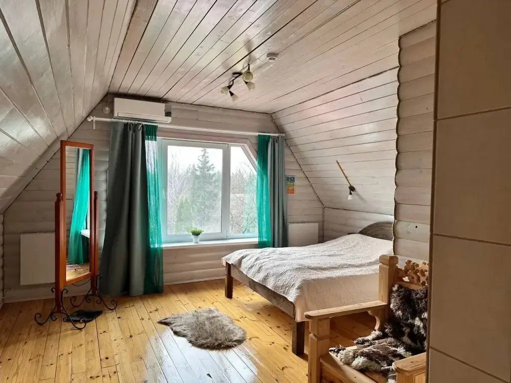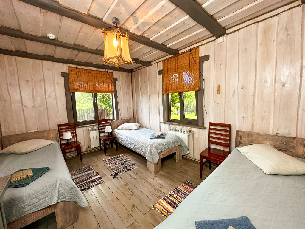 В доме две спальни, в одной из которых двуспальная кровать, в другой - 3 односпальных.