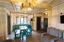 Спальня с двуспальной кроватью, гостиная зона с диваном, журнальным столом, стульями, комодом для вещей, санузел.