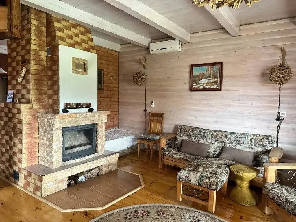 Для максимально комфортного отдыха есть все необходимое: кухонная зона (плита, чайник, холодильник, микроволновая печь, набор посуды), двухместный диван. В гостиной, мебель ручной работы, камин, кондиционеры.