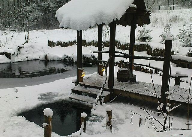 Вокруг лес, возле бани пруд с ключевой водой. Попарившись в парилке, туда можно смело окунуться. Ключевая вода придаст вам сил и бодрости!