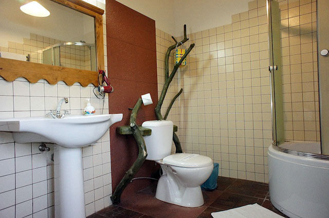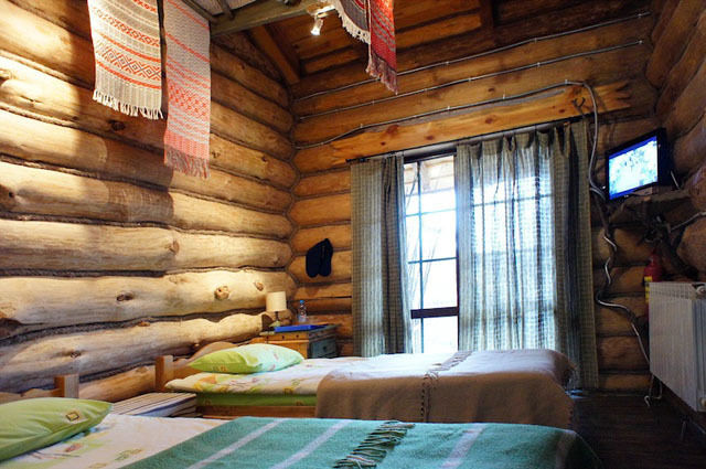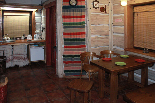 Все комнаты обставлены в одном стиле, но конечно отличаются друг от друга. Из каждой комнаты есть выход в свой дворик со столом и мангалом. Здесь можно отдохнуть в лучах заходящего солнца любуясь закатом. Сидя на бревенчатых ступенях с приятной подсветкой, можно душевно пообщаться с друзьями. Здесь же можно завтракать, вставая с первыми лучами солнца.