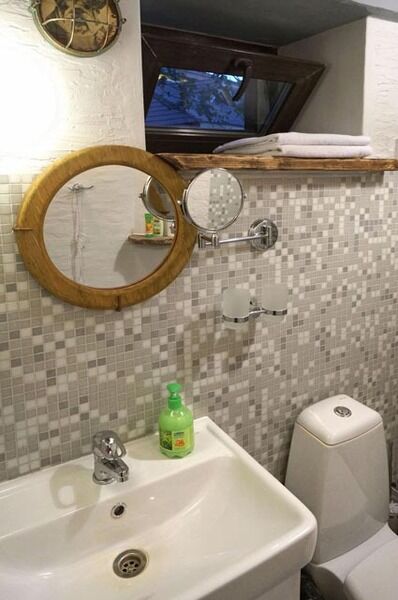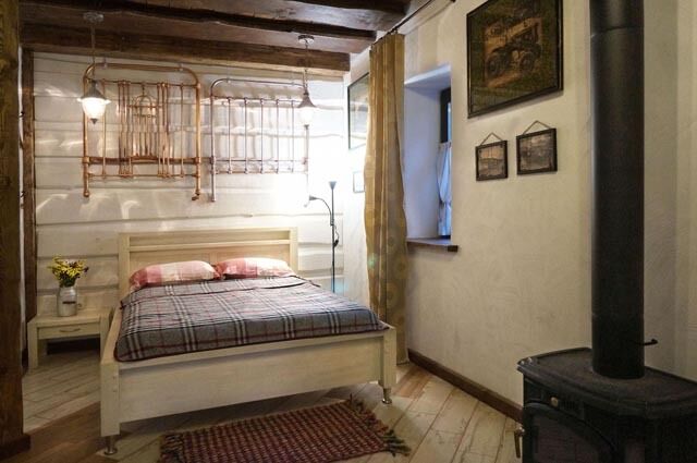 В "Млыне" может комфортно разместиться компания из 4 взрослых и 2 детей. Здесь есть все, что понадобится вам для загородного отдыха. Камин на дровах, небольшая кухня со всем необходимым, просторный душ, веранда, мангал.