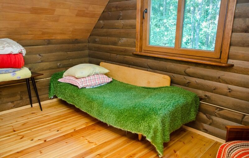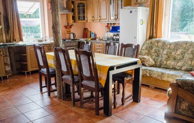Отдыхающие могут расположиться для ночлега в 5 комнатах с двуспальными кроватями, на каждом этаже имеется санузел. Гостевая комната с камином совмещена с кухней и имеет выход на балкон-террасу, который идеально подходит для отдыха в хорошую погоду. Приятным моментом является то, что в доме расположено излюбленное развлечение мужчин — русский бильярд, а также ТВ с hi-fi системой.
