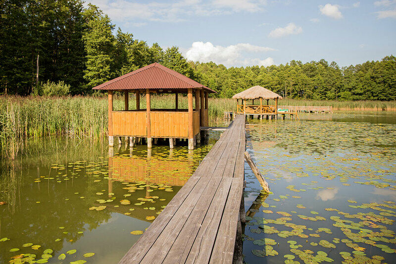 Большое преимущество усадьбы в том, что расположена она на территории Озерского республиканского ландшафтного заказника. Дома находятся в шаговой доступности от озера Рыбница, а вокруг усадьбы щедро раскинулся ароматный лес. Гости усадьбы под Гродно «На озере» смогут совершить экскурсии по заказнику, покататься на велосипеде, лодке, катамаране. Также возможна остановка на территории усадебного комплекса в палатках.