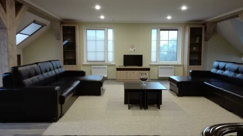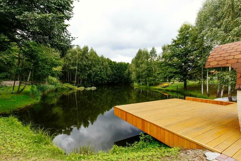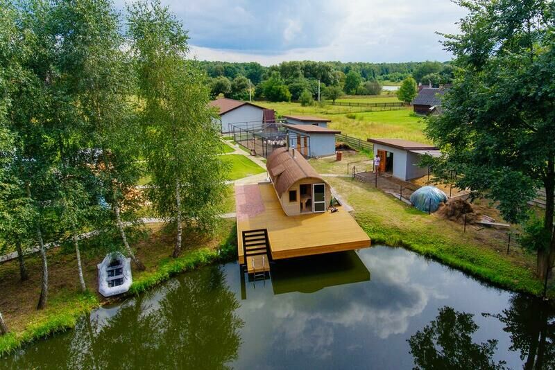В числе удобств гостиная зона, телевизор с плоским экраном, транслирующий спутниковые каналы, стиральная машина. Полотенца и постельное белье предоставляются. На территории агроусадьбы имеется собственное озеро, где может быть организована рыбалка. В распоряжении гостей беседка с принадлежностями для барбекю и баня (включена в стоимость проживания). Услуга доставки продуктов на усадьбу может быть предоставлена по запросу.