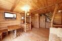 Рассчитана на 6 человек, отапливается дровами. К услугам отдыхающих ароматерапия, душистые веники, чай на травах. В бане есть комната отдыха с ТВ.