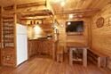 Гостиная, три двухместных спальни, душ, туалет, горячая и холодная вода, отопление, СВЧ-печь, стиральная машина, холодильник, электроплита, телевизор, dvd-плеер.