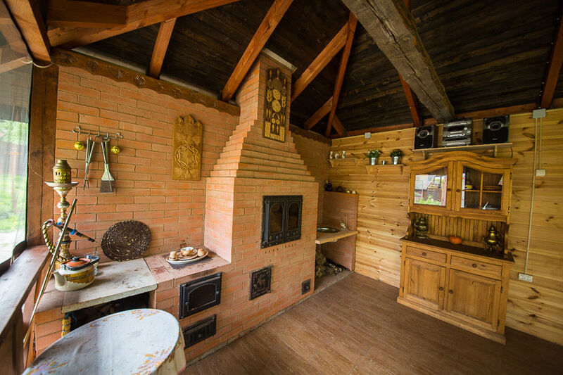 Интерьер располагает для приятного времяпрепровождения в любое время года. В Вашем распоряжении: печь барбекю, переносной мангал, шампура, посуда, дрова, удобная мебель, освещение, музыкальное сопровождение. Стоимость аренды без ночлега 160 BYN.