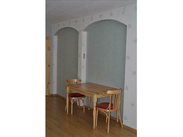 Спальня "Березка" выдержана в спокойных тонах: нежном зеленом и бежевом. Здесь очень много дерева. Очутившись в спальне, кажется, будто бы находишься в светлой березовой роще. Окно спальни также выходит на лесополосу.
