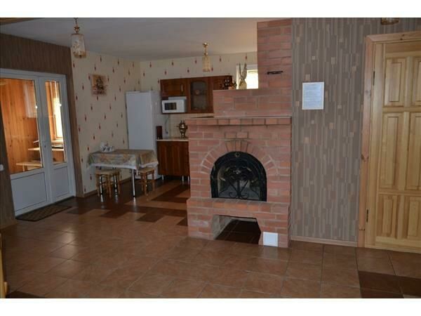 Говорят, нет ничего более завораживающего, чем вид маленьких язычков пламени тихонько играющих на дровах в камине. Чтобы почувствовать настоящий деревенский быт, создать особое романтическое настроение, гостиная обустроена камином.