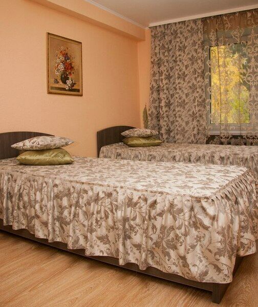 Двухместный номер с двумя односпальными кроватями, телевизором и отдельным санузлом. Санузел размещен через общий коридор.