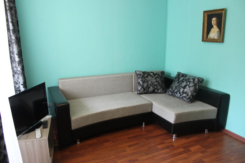 - В гостиной раскладной диван и односпальная кровать, телевизор.