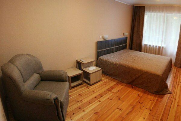 - Комната с двуспальной кроватью, креслом-кроватью и телевизором.