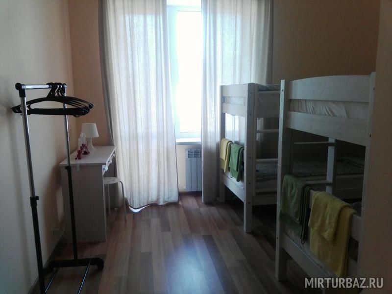 Четырехместный номер с двухъярусными кроватями. Номера площадью 15 кв. Собственная ванная комната.