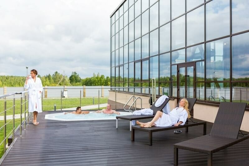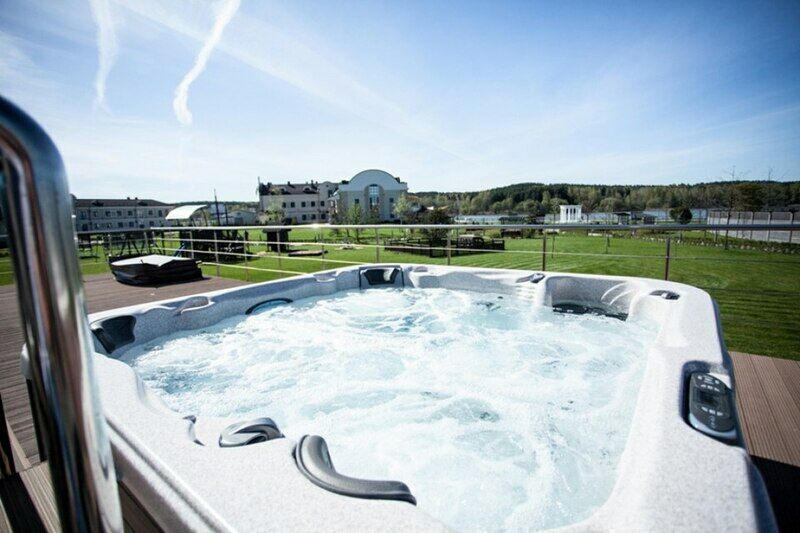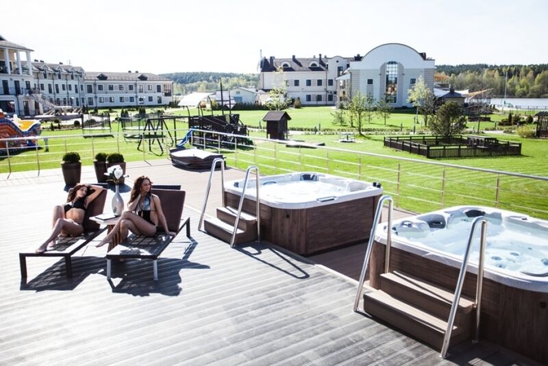 - джакузи под открытым небом, наполненные минеральной водой, что поможет ощутить море в спа-комплексе у Минска;
