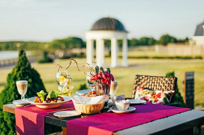 В летние деньки и теплые вечера можете разместиться на одной из террас. Посетив ресторан на берегу Минского моря, не упустите шанс полюбоваться великолепным панорамным видом. Устройтесь на уютном просторном диване, насладитесь лучшими блюдами нашего шеф-повара, растворитесь в непринужденном общении или побудьте наедине с собой в расслабляющей атмосфере.
