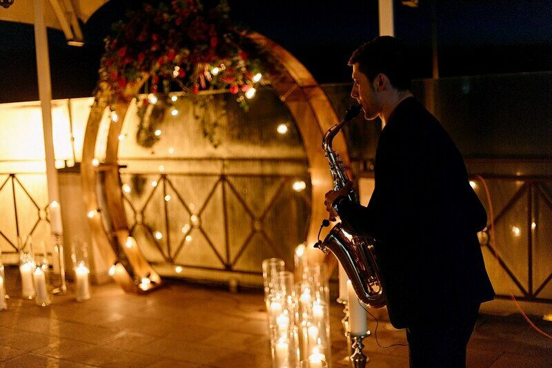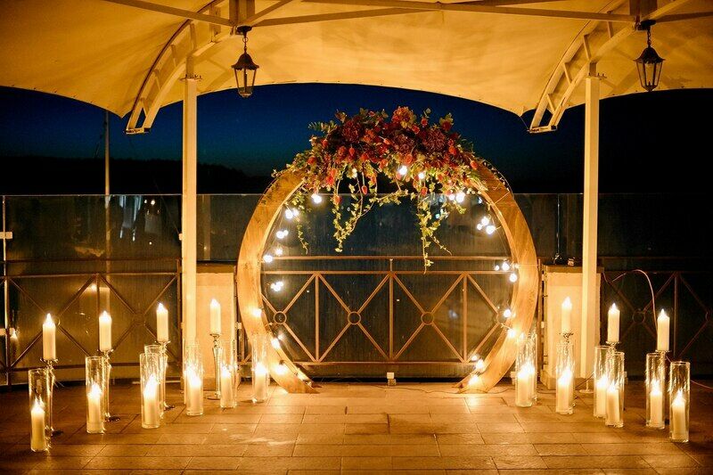 Свадьба на летней террасе в вечернее время - отличный вариант для романтического торжества.