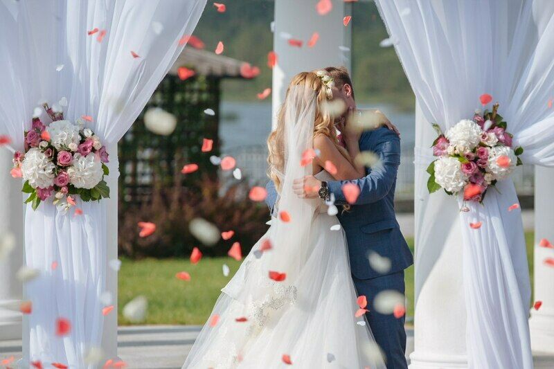 Свадьба на небольшое количество человек в беседке на воде. В беседке Вы будете чувствовать уединение и приятную атмосферу.