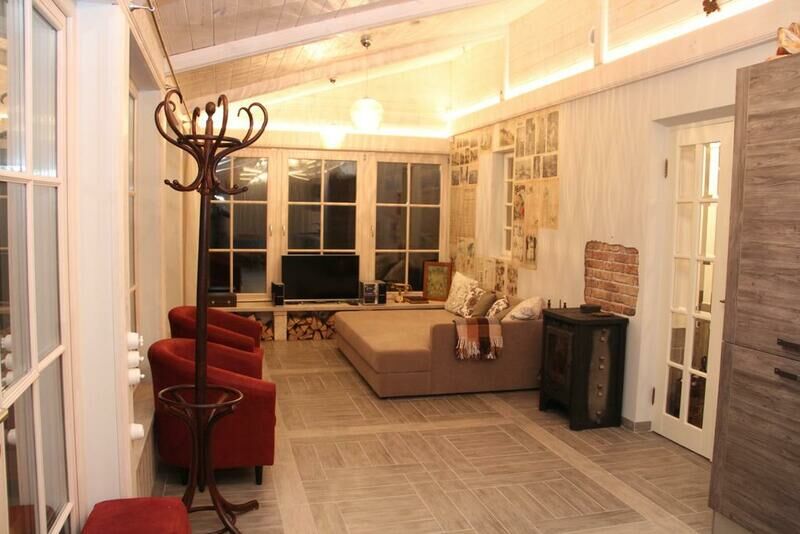 В русской бане, которая топится дровами можно попарится, полюбоваться старинной картиной со сценой охоты, послушать ламповый приемник, а в летний период разместиться еще двум гостям.
