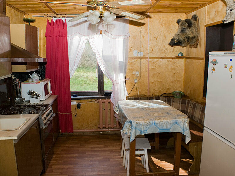 Бесплатный Wi-Fi, каминный зал, душ, туалет, вода горячая и холодная, микроволновая печь, холодильник, газовая плита с духовым шкафом, посуда, муз. центр, видеомагнитофон, DVD- караоке + два микрофона, телевизор, спутниковое ТВ, беседка с печкой для барбекю и ухи, детская площадка, стоянка для автомобилей на 5 мест, гараж.