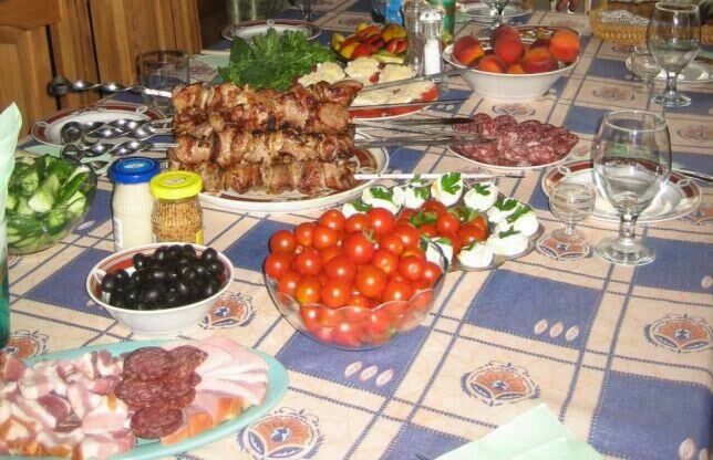Свое мясо и овощи.