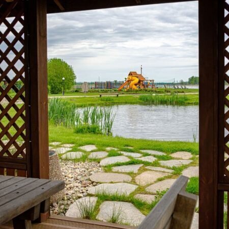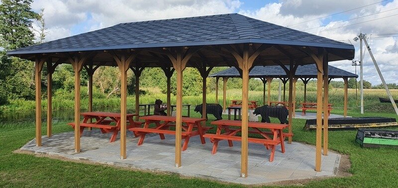 - уютные беседки с мангалами на берегах озера Богинское и реки Дрисвята;