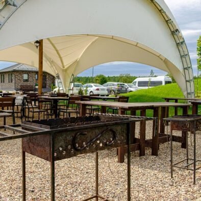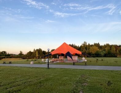 - всесезонный шатёр до 150 посадочных мест для проведения банкетов, фуршетов и корпоративных мероприятий любого уровня, укомплектованный мультимедийным оборудованием;