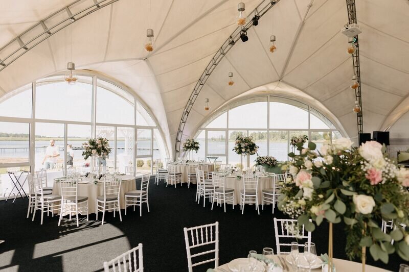 Аренда шатра вместимостью до 200 человек с кондиционированием и отоплением, освещением, а также отдельно стоящим санузлом.