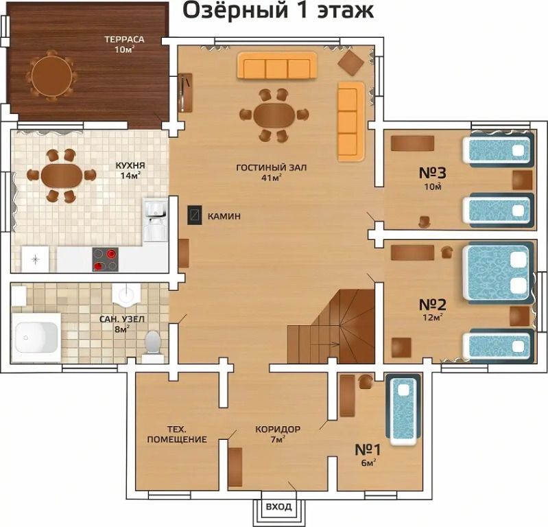 Коттедж 14-местный 2-этажный коттедж Озерный