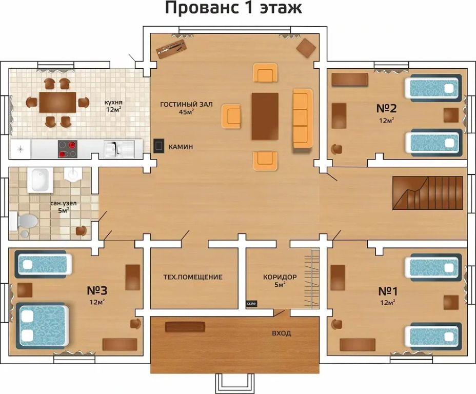Коттедж 11-местный 2-этажный коттедж Прованс
